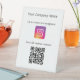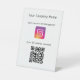 A convenient tabletop sign to display in your business that lets your customers connect with you on social media by scanning your QR code. This example uses Instagram as the social media type. Personalise the template with your company name and Instagram URL.