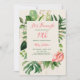 The perfect invitation for a fun, elegant 90th birthday party, this "Let's Flamingle" design features a beautiful gold and green tropical watercolor motif, embellished with a beautiful flamingo. With pink and green text in both hand lettered script and modern sans serif typography, you can CHANGE THE YEAR to any year you want to celebrate, such as 83rd or 77th! The back of the card features a complimentary tropical watercolor greenery motif. Copyright Elegant Invites, all rights reserved.