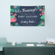Flamingo baby shower welcome banner with an illustration of a cute flamingos, palm leaves, palm fronds, and flowers, and charming fonts against a deep blue background. Add the mum-to-be's name in a pretty calligraphy script!