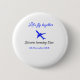 Let's fly together first birthday plane blue silve 6 cm round badge