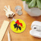 A pair of digitally designed birds in black and red colours in front of a yellow background.