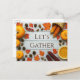 Invite friends and family to celebrate the season with this festive Thanksgiving postcard. The design features autumn pumpkins, acorns, a pumpkin pie, and fall leaves. With its warm seasonal colours and rustic background, this postcard sets the perfect tone for a cosy holiday celebration. The flat postcard style makes it easy to personalise, address, and send, offering a charming and convenient way to bring everyone together for your Thanksgiving dinner or fall gathering.