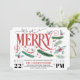 Featuring a whimsical swirled font and watercolor pine branches, berries, and holly in softer shades of deep red, dusty pine, and light blues, this Christmas or holiday party invitation has a slightly retro vibe. The back features a small plaid print accented with holly in deep red. Coordinates with our Let's Get Merry holiday collection.