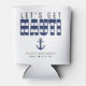 Blue and white striped "let's get nauti" can cooler for a bachelor / bachelorette party. Personalise it with your own text.