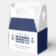 Blue and white striped "let's get nauti" favour box for a bachelor / bachelorette party. Personalise it with your own text.