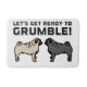 Let's Get Ready to Grumble Bath Mat lets you greet the day like a clean, fluffy pug, Did you know a group of pugs is called a grumble?! Isn't that perfect?!?! This incredibly soft bathmat features a fawn pug meeting a black pug (the profile of our late great pug Ube).