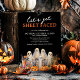 Add a spine-tingling touch to your Halloween party with our unique adult invitations! Boasting a deathly black background, playful watercolor motifs of ghosts and pumpkins, and humourous cocktail drinks. Along with the funny saying, 'let's get sheet faced,' these invitations are sure to bring laughter and chills. The easy-to-personalise text template lets you add your own spooky message, making the party planning a cakewalk in the park!