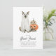 Hosting an adults only Halloween bash? Invite friends with these charming and funny invitations featuring a dog wearing a ghost costume, flanked by watercolor jack-o-lantern pumpkins. "Let's get sheet-faced" appears beneath, along with your Halloween party details.