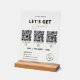Connect with your customers the easy way with our modern social media QR code acrylic sign. Featuring an elegant design with 3 QR codes for your different social media platforms and a fun 'Let's Get Social' heading with black text and a splash of deep yellow calligraphy script text. This well balanced design has everything perfectly placed so it's easy to read and scan. There's also room for your own logo and additional contact information including phone number, address and website. Customise with your own details right here in Zazzle!