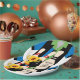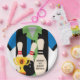 If it's a bowling birthday party or even just a bowling party in general, these colourful bowling theme paper plates are a perfect fit! Features a background with a striped bowling shirt of blue, green, and black, a bowling ball, three bowling pins, a gold trophy, and an area you can add text with his age and name!