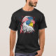 I give wanted to give this a 4 instead of a 5 because these Basic DARK T0shirts run unexpectedly SLIM or Narrow. Which is great if you do not have a potbelly, but I have a paunch. It isn't the shirt's fault that I've got a beer belly. The design and shirt itself is a quality cotton shirt. The color is more of a deep purple, but still a very pretty color. The Basic DARK T-shirts run a bit SLIMMER than the Basic Ts. The neck is a fraction narrower (or seems to be narrower) also. I'm a paunchy middle-aged woman and my neck is 12 inches (31cm) thick and the neckline fell about the same as in the photo of the man, and I had the desire to tug it a bit. So if you're a thick necked man or like loose shirts, be aware these are slimmer shirts. Once I get rid of my lockdown paunch it'll look great. The shirt washed well in cold water with no apparent bleeding. We don't have a dryer, so it hung dry. Did not shrink. Love the colors and the design. The design looks smaller on my shirt than it does on the model on-line. But still, it looks good on the shirt. The printing looks as it does on the model, just the size seems fractionally smaller. Washed garment in cold water, hung dry and design appeared unaffected.