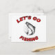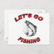 Lets go fishing with a fish leaping out of water with text surrounding it