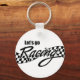 The phrase "Let's Go Racing" with a black and white chequered banner, that looks like it's blowing in the wind, behind it.