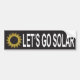 Let's Go Solar Bumper Sticker with white lettering and yellow sun design on a black background for maximum visibility. Promote solar energy and solar power. Sustainable alternative energy is the answer!