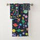 Let's Go to Space Navy Blue Pattern UFO Bath Towel Set
