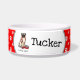 I absolutely love this product! I was a little concerned prior to buying it, but I was blown away by the quality of the item. The bowl is sturdy and arrived clean without any damage. The printing was crisp and clean and looks Better than I hoped! My dogs immediately knew these were for them and get very excited to pose with their new bowls! Definitely recommend and will purchase more in the future! The printing is crisp and well done. It looks absolutely beautiful on the bowl, and I can tell that it’s going to hold up well over time.