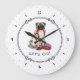 Let's Go! (walk) Pug Dog (light fawn) Leash Cute Large Clock