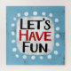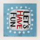 "Let's Have Fun" is a cute text design in light blue with black and red text, along with a white accent shape and white textured whimsical dots surrounding it.