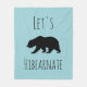 Cute "let's hibearnate" typography fleece blanket featuring a black bear silhouette over your choice of background!