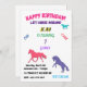 "Let's Horse Around" Birthday invitation with personalised name and age celebrating fun, games, cake & ice cream.