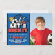 Kick off the fun with this sporty soccer-themed birthday invitation! Perfect for your little one’s 1st birthday celebration, this playful design features a soccer ball, jersey, trophy, and bold comic-style lettering that says “Let’s Kick It.” This invitation is ideal for soccer fans, sports-loving kids, and energetic birthday parties. Customise the name, date, time, and location to make it uniquely yours. ⚽ Great for: Toddler & kids birthday parties Soccer or sports-themed celebrations Bring the excitement of the game to your child’s big day with this fun and vibrant invitation!