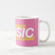 "Let's Make Music Exciting Again!" coffee cup with pink background.