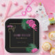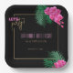 Let's Party Black Gold Neon Tropical 40th Birthday Party paper plates. Celebrate your birthday in style with this bold, neon, tropical design with gold glitter accents, bright pink orchids, and tropical greenery on a black background. Come on - let's party!