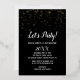 This Let's Party Confetti on Black New Year's Eve Party gold foil invitation is perfect for a classy New Years celebration. The design features trendy real gold foil confetti on a black background with elegant white calligraphy.