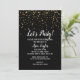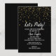 Let's Party Gold Confetti on Black Birthday Party Invitation
