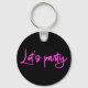 Lets party hot pink neon script minimalistic black key ring