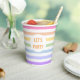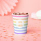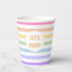 Let's Party in White Circle Pastel Rainbow Stripes Paper Cups