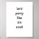 Let's party like it's 2026. Typography in black and (transparent) white. You can change the background color.