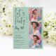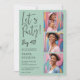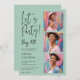 Celebrate the big 4-0 in style with this modern and elegant 40th birthday party invitation! Pastel sage green Featuring a sleek and clean design, this invitation showcases the playful phrase "Let's Party!" in a stylish script font, followed by "Big 40!" in bold lettering. The left side of the card provides all the essential party details in a sophisticated serif font. The right side of the invitation highlights a series of three photo slots, perfect for showcasing favourite pictures of the guest of honour. The combination of contemporary typography and a minimalist layout ensures a chic and polished look. Fully customisable, this invitation allows you to adjust colours and photos to match the party theme and personal style.