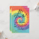 This trendy rainbow tie dye invitation features bright colors and your custom text. Use the template form to add your details. The Customize feature allows you to change the font style, and add or delete text.