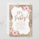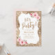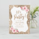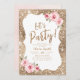 Faux gold sparkle glitter background and blush pink floral with "let's party" script in centre, elegant and stylish, great invitations for birthday party, holiday party, engagement party or other special occasions.
