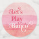 Show your love for Bunco during your Valentine February Bunco theme month or all year round. Pretty and pink watercolor design with beautiful heart and three lucky Bunco dice. Let's Play Bunco is a fun decorative element for your Bunco party night.