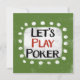 "Let's Play Poker" is a cute text design with a white accent shape surrounded by white textured whimsical dots.
