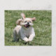 Cream and white Shih Tzu dog happily running with her ears flopping back and a big grin on her face wanting someone to play with photo postcard
