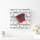 Let's Polka, red accordion on sheet music, Square Wall Clock