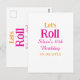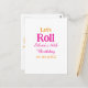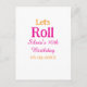 Let's roll happy 10th birthday add name retro pink postcard