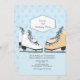 A winter sport invitation to celebrate a birthday on ice. Suitable for boys and girls. The light blue background features stars and white and tan skates.