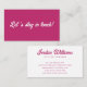 Trendy fuchsia pink and white or custom colour business cards with your name in a retro style font and title/company name and contact information below. Custom text on the front: Let's stay in touch. You can change background colours, fonts and font colours, move and resize elements with the design tool.