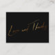 These simple, distinctive card inserts were designed to match other items in a growing event suite that features a modern casual handwriting font over a plain background you can change to any colour you like. On the front side you read "Let's Talk About Gifts" in the featured type; on the back I've placed a matching "Love and Thanks". These graphics have been embellished with a festive faux-metallic gold finish. Editable type is rendered in an all-caps, serif typeface. My place holder message reads "The most important thing is