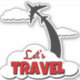 Retro style "Let's travel" illustration with aeroplane decoration on the cloudy sky