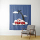 Retro style "Let's travel" illustration with aeroplane decoration on the cloudy sky