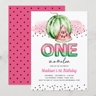 Summer Foil Balloon Letters Melon First Birthday Invitation