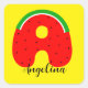Letter A Name Sticker, Watermelon Name Sticker, Square Sticker