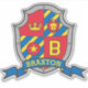 Knights style shield crest monogram letter B graphic art stickers in shades of red, blue and grey. Personalise with your own name or family name beginning B, currently reads Anthony. Ideal for personalising your belongings if your surname or first name begins with the letter B. Unique eagle head, crown, and shield crest drawing and graphic art and design by Sarah Trett for www.mylittleeden.com