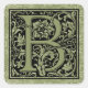 Charming decorative letter B initial monogram calligraphy style typography first letter in black over vintage sage green - avocado green book lining with off white Ginkgo biloba leaves.