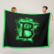 This fleece blanket displays the capital Letter B inside of a glowing like green coloured effect decal with a unique font over the front panel with a delicate and soft feel perfect for picnics, outdoor events, and cosy winter snuggles. All blankets are made from 100% polyester fleece with edge-to-edge sublimation printing and sturdy double edge stitching has off-white back colour.